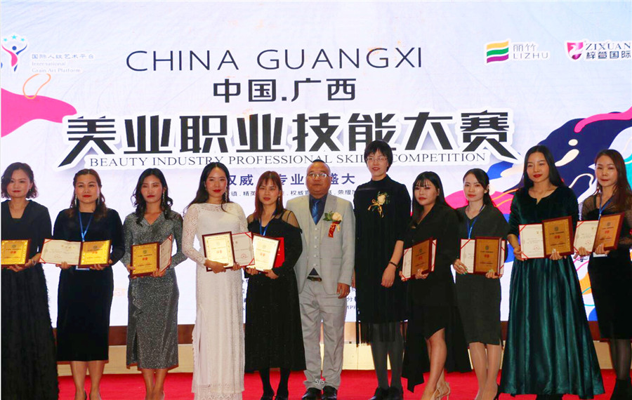 獲獎(jiǎng)名單:楊文宏(美容)、游鵬鵬(美發(fā))、梁媚(美甲)、蘇貴霞(紋繡)、吳寒(彩妝)