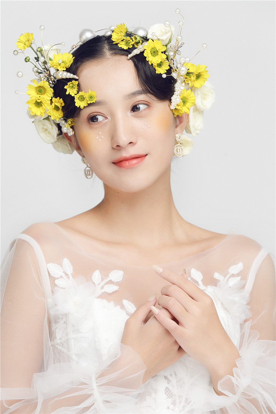 麗竹學(xué)校彩妝作品---森系鮮花造型:美得淡雅脫俗的花朵,縈繞在靈動的發(fā)絲上,花開半夏如詩如畫,驚艷了時光隧道,造就了一人一花一世界。