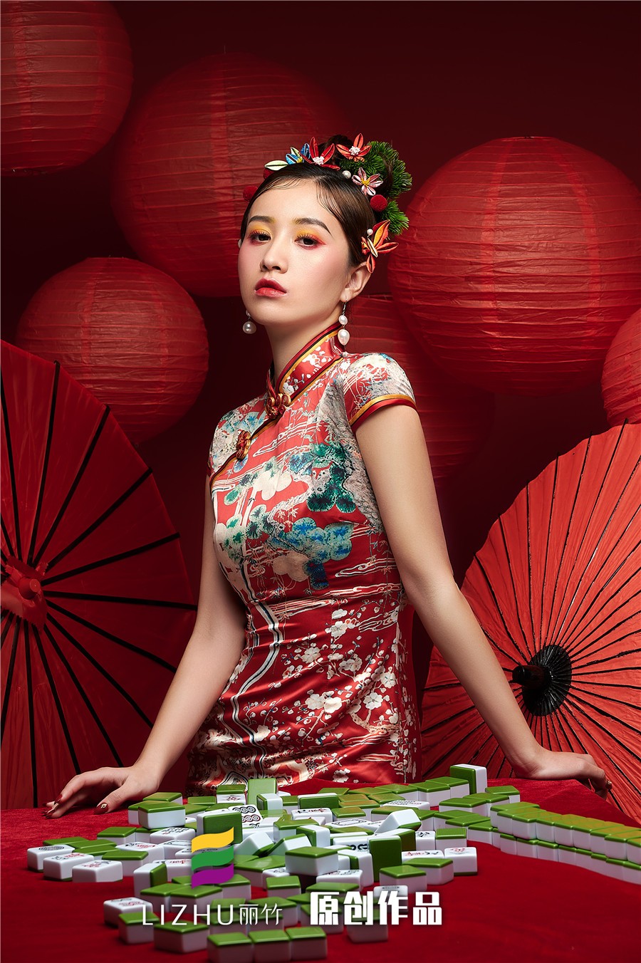 南寧化妝學校(麗竹學校)彩妝作品---精致國風旗袍造型:復古手推波與旗袍搭配,風靡了民國時期的整個上海灘,以流暢的線條、圓潤飽滿的美感,給人帶來了嫵媚的女人味。