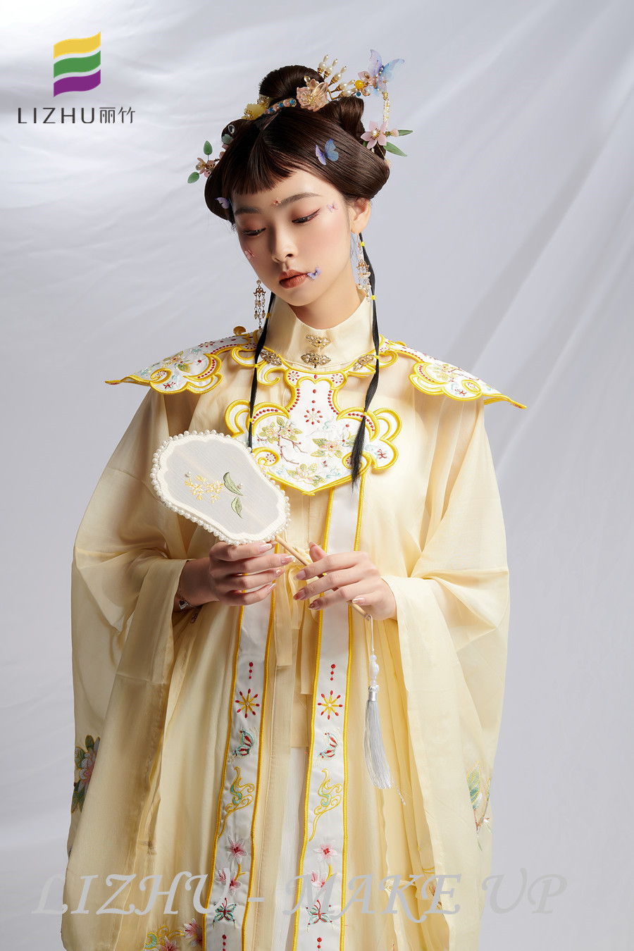 淡黃色的服飾與發(fā)飾相互陪襯