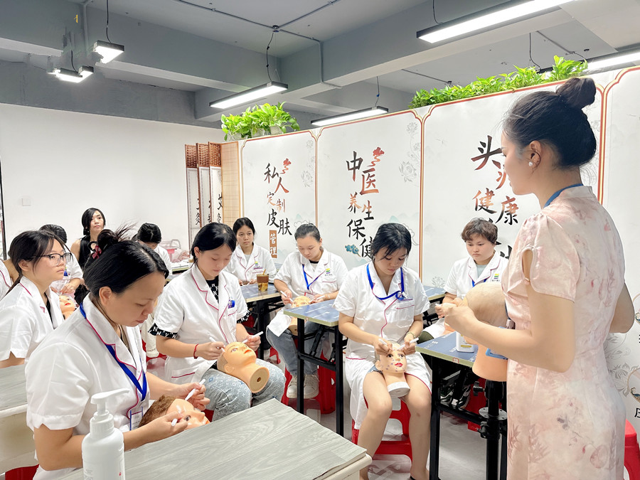 廣西學(xué)美容面部、廣西學(xué)面部提升:想要掌握撥筋棒點(diǎn)按面部xue位的手法,在此之前,同學(xué)們必須跟著老師通過(guò)在假頭模上練習(xí)認(rèn)識(shí)和熟知不同xue位的作用后,才能正式開(kāi)啟真人操作。