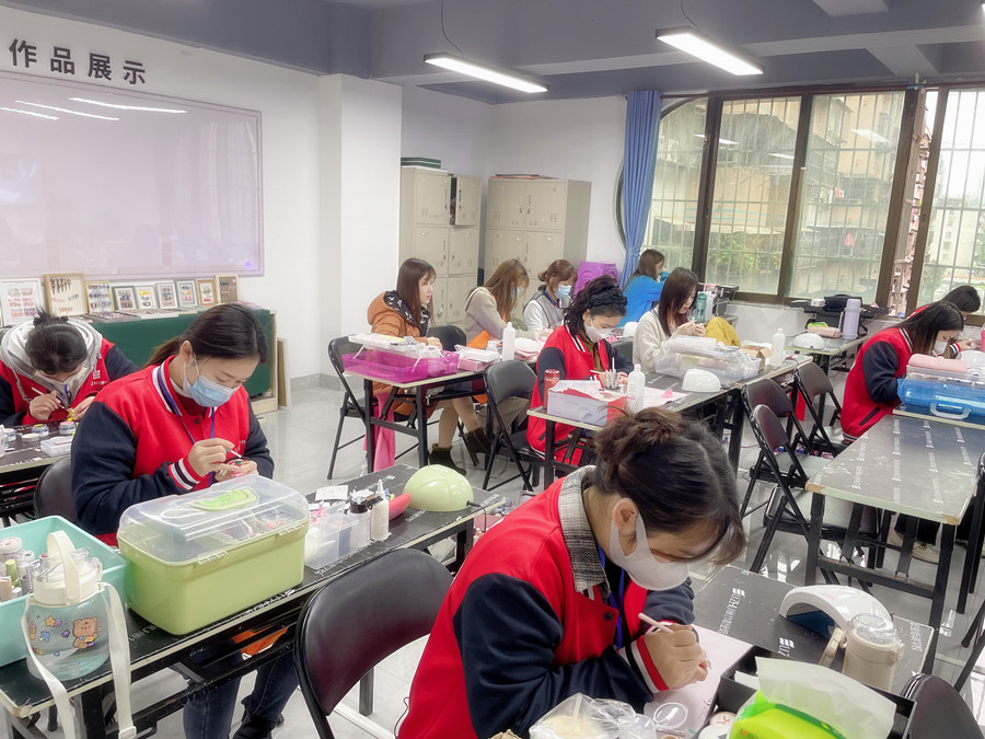 接下來(lái),請(qǐng)跟隨南寧美甲造型培訓(xùn)學(xué)校的腳步,一起走進(jìn)南寧美甲進(jìn)修提升的教室里去看看同學(xué)們正在繪制的國(guó)風(fēng)美甲作品---青花·雅韻。