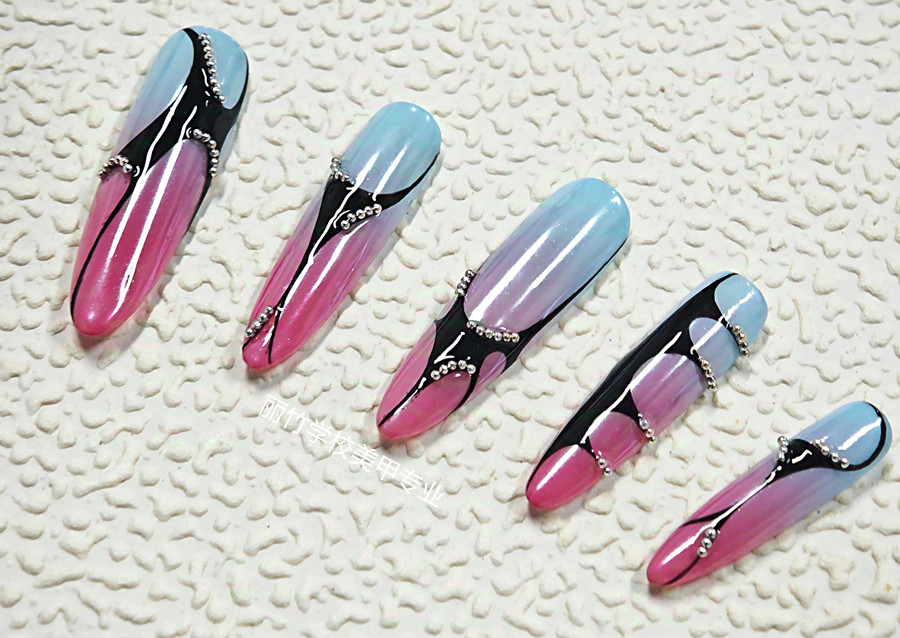 漸變線條美甲,廣西美甲學(xué)院實(shí)訓(xùn)作品