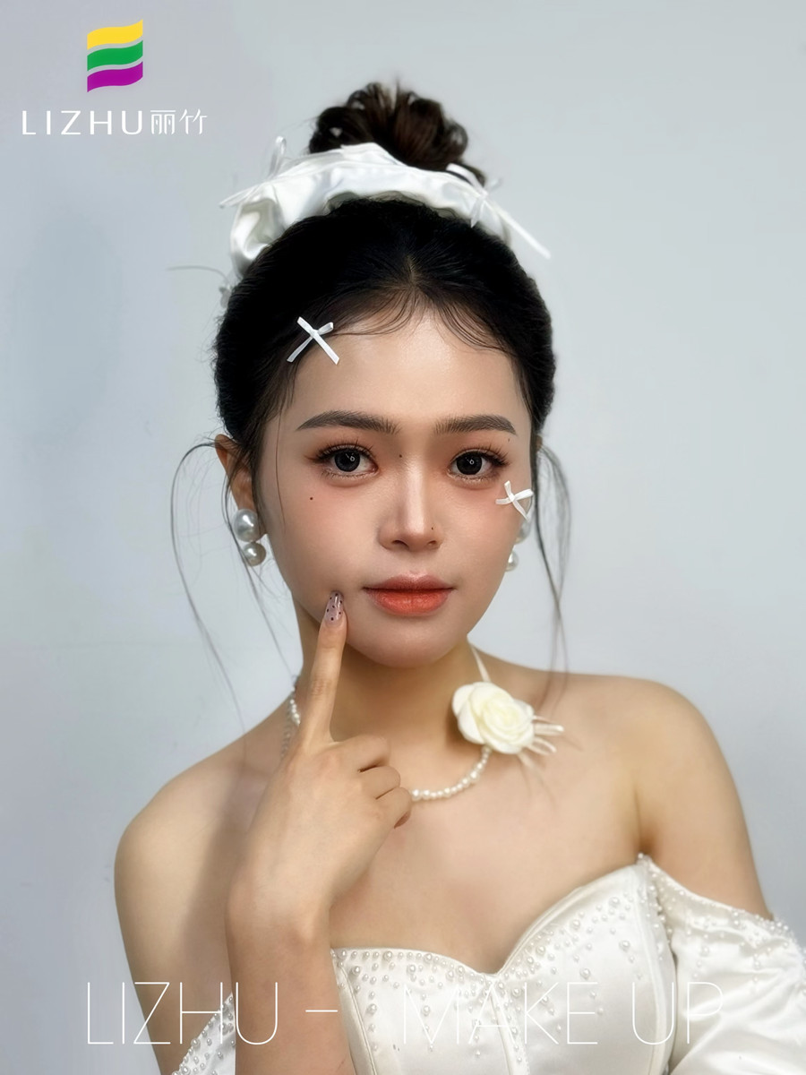 廣西彩妝影樓(麗竹彩妝影樓培訓(xùn)):韓系甜美丸子頭新娘(一)