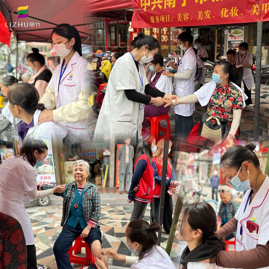 南寧美容公益活動、南寧美容培訓(xùn)外出教學(xué):踩著三月的尾巴,南寧美容職業(yè)技師學(xué)校-南寧美容培訓(xùn)班(麗竹美容培訓(xùn)班)的同學(xué)們直接在校門口擺起了臨時“艾灸館”,免費(fèi)為居民提供艾灸和按 摩等服務(wù)。阿姨體驗(yàn)完后,都紛紛向同學(xué)們豎起了大拇指,感謝大家提供給的服務(wù),同學(xué)們也露出了燦爛的笑容給予答謝。