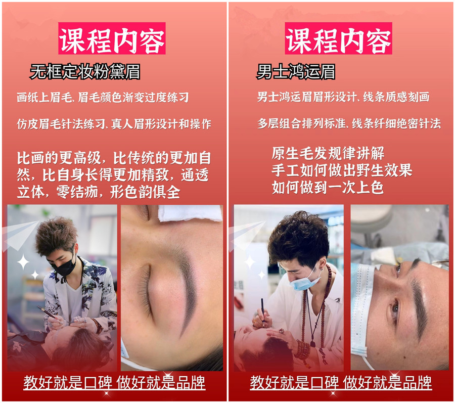 南寧眉眼唇課程:無框定妝粉黛眉 、男士鴻運眉