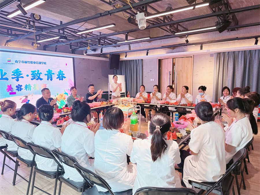 畢業(yè)座談會、廣西美容培訓(xùn)班畢業(yè):畢業(yè)之際,廣西南寧美容專業(yè)學(xué)校-廣西美容技師班-麗竹學(xué)校美容專業(yè)以“畢業(yè)季·致青春”為主題,舉行了一場溫馨的畢業(yè)座談會,回憶和過往,暢談未來。祝愿所有從廣西美容專業(yè)培訓(xùn)畢業(yè)的麗竹學(xué)子都能以渺小啟程,以偉大結(jié)束。